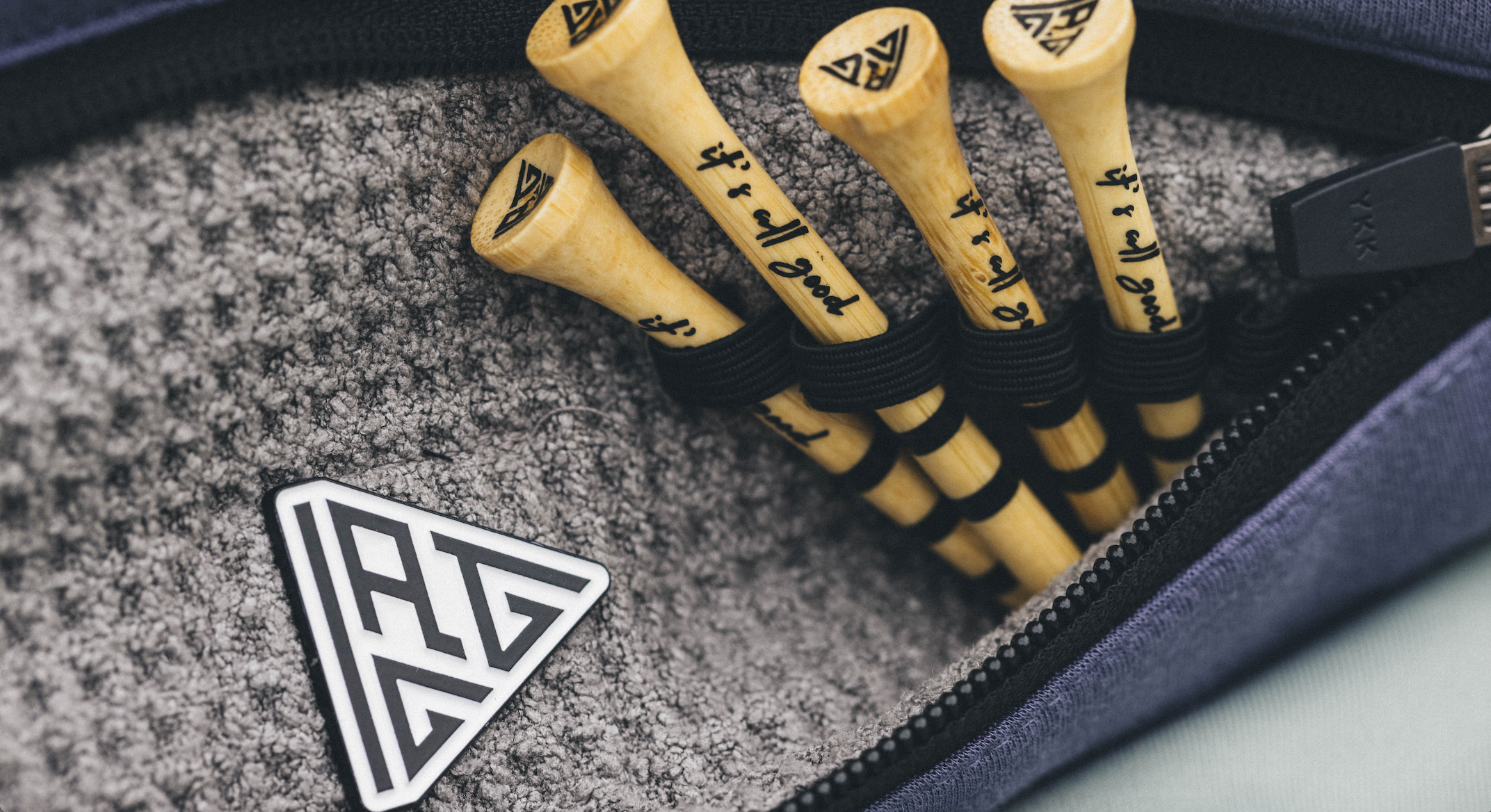 - Front pocket with a microfiber golf towel material, an AGG magnetic ball marker, and golf tee slots.